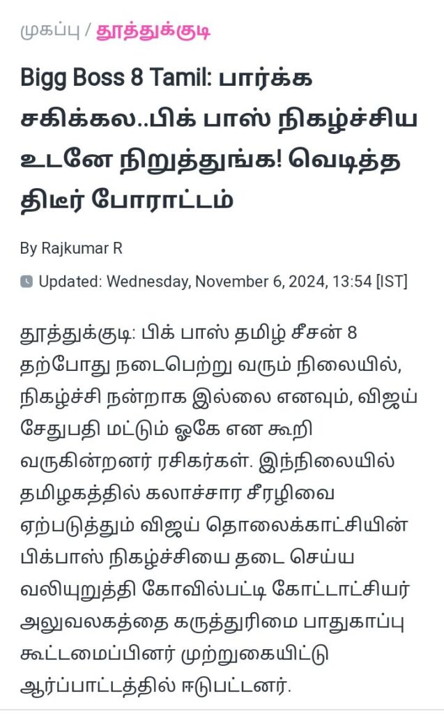 தென்காசி மாவட்டத்தில் செய்தி மக்கள் தொடர்பு துறையில் ஏ பி ஆர் ஓ பணி புரியும் ராமசுப்பிரமணியன் லஞ்சம் தலைவிரித்து ஆடுகிறது மாவட்ட நிர்வாகம் ஏன் கண்டு கொள்ளவில்லை மாத 10 லட்சம் வரை சம்பாதிக்கும் ஒரு ஏ பி ஆர் ஓ பி ஆர் ஒக்கும் மரியாதை இல்லை மாவட்ட நிர்வாகமும் செய்தி மக்கள் தொடர்பு துறையும் என்ன செய்கிறது 3 ஆண்டுகளாக ஒரே இடத்தில் தனக்கென்று தான் மாவட்ட அதிகாரி என்று கூறிக்கொண்டு வசூல் பேட்டை வசூல் மன்னனாக தீர்க்கிறார் ஏ பி ஆர் ஓ இவர் பெய்து நடவடிக்கை எடுக்கப்படுமா இல்லை வழக்கு பதிவு செய்யப்படுமா என்பது கேள்விக்குறியாக உள்ளது விரைவில் இவரை கண்டித்து வால் போஸ்ட் மற்றும் காவல் நிலையத்தில் புகார் அளிக்கப்படும்.உதவி செயற்பொறியாளர்களுக்கு பணி ஆணை வழங்கினார் முதல்வர் மு.க.ஸ்டாலின்.டிஎன்பிஎஸ்சி மூலம் தேர்வுசெய்யப்பட்ட 246 உதவி செயற்பொறியாளர்களுக்கு செயற்பொறியாளர்களுக்கு முதலமைச்சர் மு.க.ஸ்டாலின் பணி நியமன ஆணை வழங்கினார். தலைமைச் செயலகத்தில் நடைபெற்ற நிகழ்ச்சியில் 246 உதவி செயற்பொறியாளர்களுக்கு பணி நியமன ஆணைகளை வழங்கினார்.