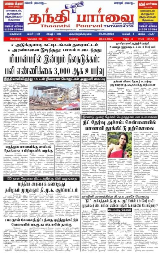 🛡️JustNow || குற்றச்செயல்களில் ஈடுபடுபவர்களை தடுக்க திடீரென அதிரடி காட்டிய போலீஸ்.. ஒரே நேரத்தில் 50 ரவுடி வீடுகளில் ரெய்டு.. அரிவாளுடன் நின்றிருந்த ரவுடியை அலேக்காக தூக்கிய போலீஸ்Thiruvarur🌏☆▬Ṁ⬪Ṁ⬪ṆḔẆṦ▬☆🌏🇮🇳30-03-25🇮🇳. 👆 இது போன்ற…கேள்விக்குபதில் கொடுக்கிறார் 😔 திருப்பூர் செய்திகள் தமிழ்நாட்டின் முதலமைச்சர் ஆணைக்கிணங்க தமிழ் வளர்ச்சி மற்றும் செய்தி துறை அமைச்சர் மு பெ சாமிநாதன் அவர்கள் மாவட்ட பொறுப்பாளர் மேயர் தினேஷ்குமார் அவர்கள் திருப்பூர் வடக்கு மாநகர் பொறுப்பாளர் தங்கராஜ் அவர்கள் வடக்கு ஒன்றிய செயலாளர் விஸ்வநாதன் அவர்கள் இவர்கள் அனைவரின் தலைமையிலும் பட்டம்பாளையம் ஊராட்சியில் உள்ள ஏடி காலணியில் பழனிச்சாமி அவர்களுக்கு மூணு சக்கர வாகனம் வழங்கப்பட்டது🙏🏻 கோடைவெயில்தாக்கம்கரணமாக 1 முதல்5ம்வகுப்புஆண்டு இறுதித்தேர்வுகளை முன்கூட்டியேநடத்தஅரசுவுவரும் ஏப்ரல் 7ம் தேதி தொடங்கி 17ம் தேதி அன்று தேர்வுகள் முடிக்கப்பட்டு, கோடை விடுமுறை விடப்பட உள்ளது Share The News Post navigation IMPORTANT NEWS முக்கிய செய்திகள் 💐✨ Important NEWSமுக்கிய செய்திகள் 🤗✨