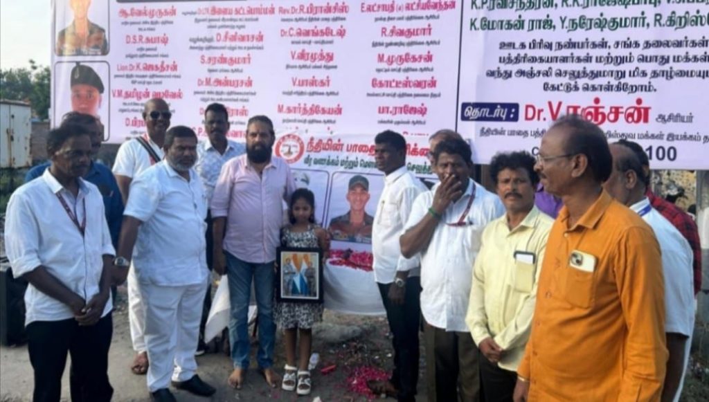 So difficult to identify a terrorist with a dissembled rifle for the Border Security Force at J&K… See how innocent he looked ஆபரேஷன் சிந்தூர் போரில் வீர மரணம் அடைந்த இராணுவ வீரர்களுக்கு மலரஞ்சலி.நீதியின் பாதை இதழ் சார்பாக,ஆப்ரேஷன் சிந்தூர் போரில் வீரமரணம் அடைந்த ராணுவ வீரர்களுக்கு மெழுகுவர்த்தி ஏந்தி மலரஞ்சலி செலுத்தும் நிகழ்வு, சென்னை ஓட்டேரியில் 23.05.2025 அன்று Dr.Rev.V.ரஞ்சன் அவர்கள் தலைமையில் நடைபெற்றது,சான்றோர் சுடர் இதழ் ஆசிரியர், வழக்கறிஞர் R.ஜெயேந்திரன், மக்கள் விருப்பம் இதழ் ஆசிரியர், ஜனநாயக அனைத்து பத்திரிகை உறவுகள் பாதுகாப்பு நலச் சங்கம் – மாநில தலைவர்த.மு.தருமராஜா D, Astro, நீதியின் பாதை இதழ் இணை ஆசிரியர் V.ராஜ் ஆகியோர் முன்னிலை வகித்தனர்,இந்நிகழ்ச்சியில் சிறப்பு அழைப்பாளராக அகில இந்திய பத்திரிகை ஊடக சங்கம், மாநில தலைவர் ஆ.வேல்முருகன்,வீரபாண்டிய கட்டபொம்மன் மக்கள் முன்னேற்ற கழக தலைவர், வழக்கறிஞர் இளைய கட்டபொம்மன்,அகில இந்திய பத்திரிகையாளர்கள் மற்றும் ஊடக வியலாளர்கள் சங்கத் தலைவர் Dr.M.அன்பரசன்,வெற்றி சரித்திரம் இதழ் ஆசிரியர், ஜனநாயக அனைத்து பத்திரிகை உறவுகள் பாதுகாப்பு நலச் சங்க மாநில பொதுச் செயலாளர் V.பாஸ்கர் B.B.A,வின் பத்திரிகையாளர்கள் சங்கம் துணைத் தலைவர், கடல் துளிகள் இதழ் ஆசிரியர் V.யுவராஜ்,நான்கு திசை மலர் இதழ் ஆசிரியர் E.லட்சாபதி (எ) லட்சிய வேந்தன்,மக்கள் சிந்தனை இதழ் ஆசிரியர் V.வீரமுத்து,மக்களின் முதல்வர் இதழ் ஆசிரியர் பா.ராஜேஷ், நீதியின் பாதை கௌரவ ஆசிரியர்Rev.Dr.R.பிரான்சிஸ்,கல்வி பார்வை இணை ஆசிரியர் Dr.J.டிக்ரோஸ், உள்ளாட்சி செய்தி தலைமை நிருபர் கோடீஸ்வரன் உள்ளிட்டோர் சிறப்பு அழைப்பாளராக கலந்து கொண்டு மலரஞ்சலி செலுத்தினார்கள்,மேலும் நீதியின் பாதை இதழ் நிருபர்கள்K.P.ரவிசந்திரன், R.K.ராஜேஷ்பாபு, V.சுப்பிரமணி, K.மோகன் ராஜ், Y.நரேஷ்குமார், R.கிறிஸ்டோபர் உள்ளிட்ட ஏராளமானோர் கலந்து கொண்டு மலரஞ்சலி செலுத்தினார்கள். Share The News Post navigation 💤முக்கிய செய்திகள்🎊ImportanT NewS💐✨ இன்றைய முக்கிய செய்திகள்🎊